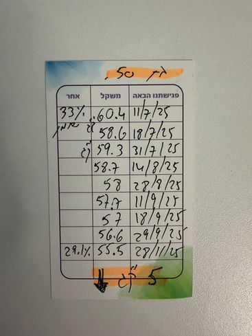 המטרה שלי הייתה לרדת שבעה קילו והיום אחרי כמעט 3 חודשים בתהליך נותר לי רק עוד קילוגרם אחד בלבד!